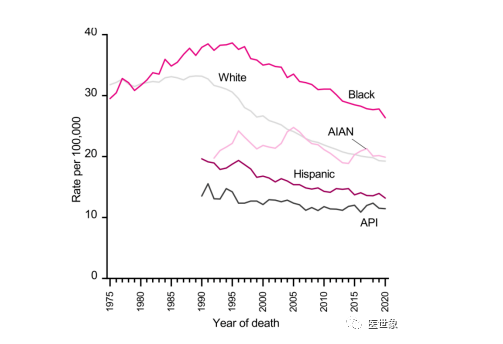 From 1975 to 2020, the trend of breast cancer mortality among different women in the United States was divided by race, in which AIAN means American Indian/Alaska Native; API, Asian/Pacific Islander In 2018, about 63% of patients with stage I or II breast cancer in the United States received breast conserving surgery with or without adjuvant radiotherapy, and 33% of women received mastectomy. Although the survival rates of patients receiving radiotherapy and mastectomy are similar, some patients still choose to undergo mastectomy under breast conserving conditions due to their unwillingness to receive radiotherapy, fear of recurrence and other reasons.